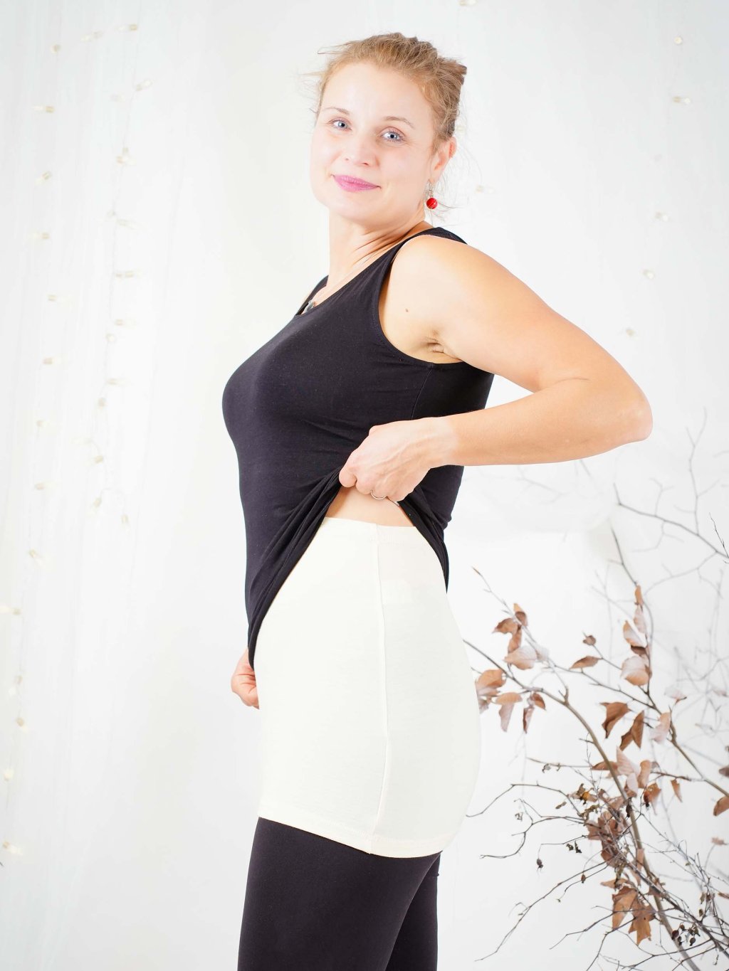 Hřejivý bederní pás je z vnitřní strany ze silnějšího Merino úpletu. Z vnější strany je silnější bavlněný úplet.