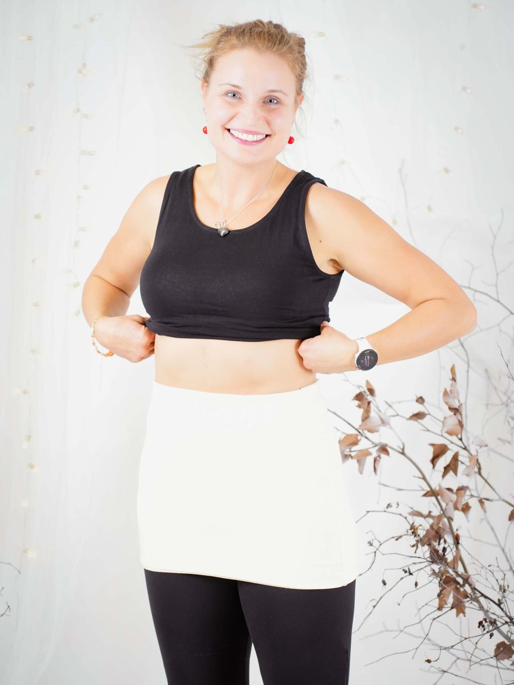 Pás lze nosit navrch či pod triko. Popřípadě jako minisukni k legínám:). Je velmi skladný, vejde si i do malé kabelky.
