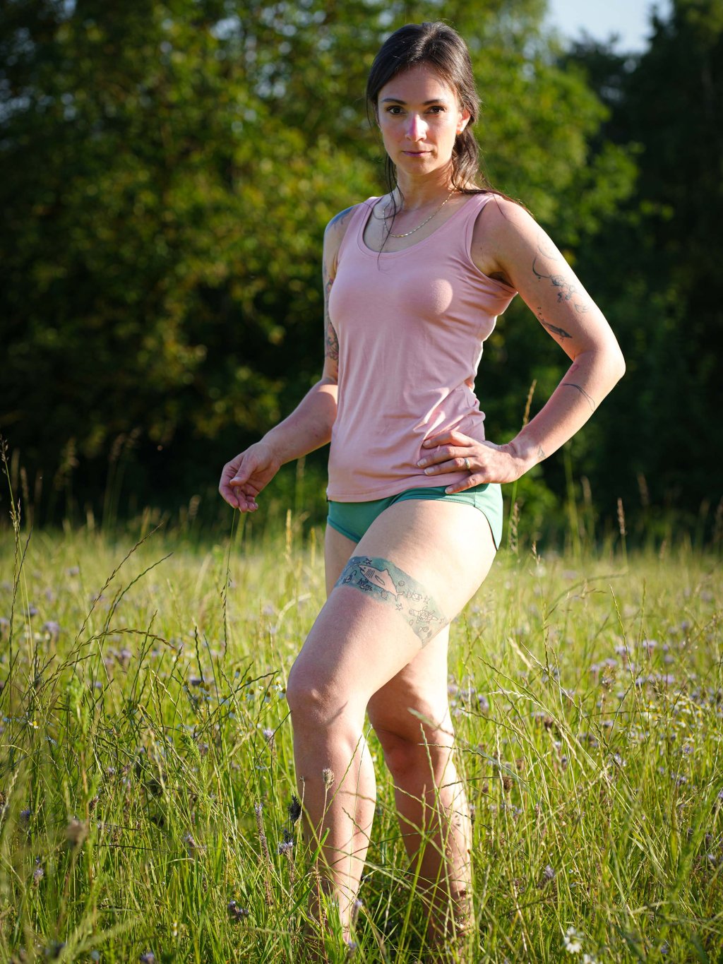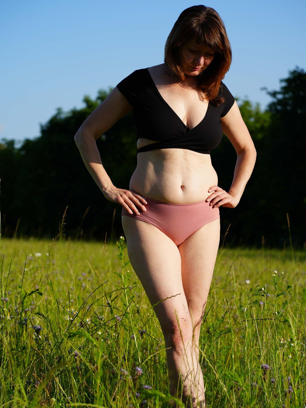 Pohodlný střih klasických kalhotek, pružný materiál, čistý a jednoduchý design. Střih krásně padne vašim křivkám. Kalhotky jsou z kvalitního BIObavlněného úpletu s Eko-tex certifikací. Pruženka je v pase všitá tak, aby se nedotýkala kůže a netlačila.