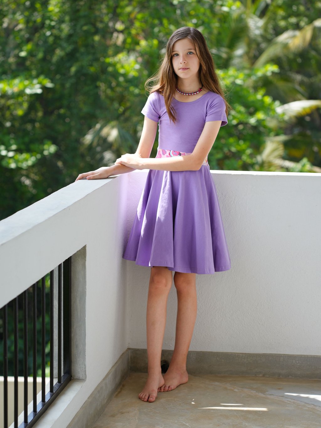 Složení materiálu vrchního dílu šatů: 95% bavlna, 5 % elastan. Certifikace:Oekotex Standard 100 // barva:levandulová