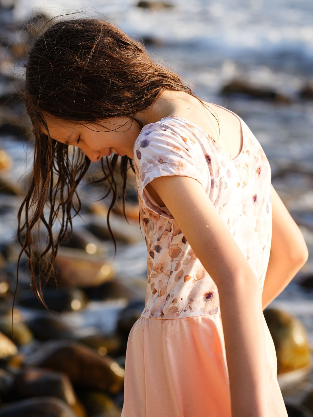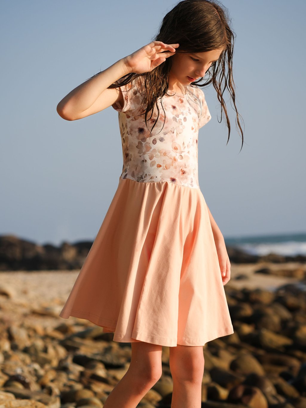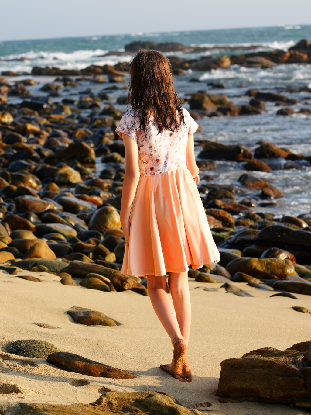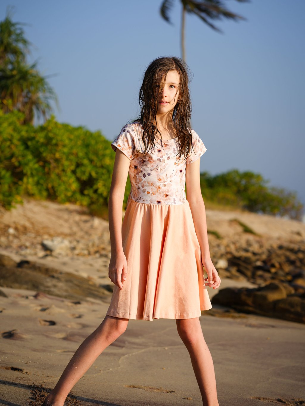 Šaty krásně můžete sladit s naší scrunchie meruňkovou gumičkou.