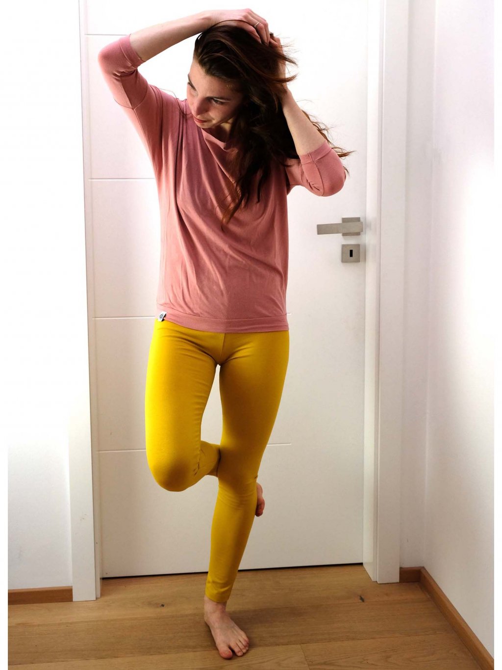 Hořčicové legíny z biobavlny, jsou pohodlným a praktickým kouskem do vašeho šatníku. Bioúplet je tak příjemný, že se stane vaší druhou kůží.