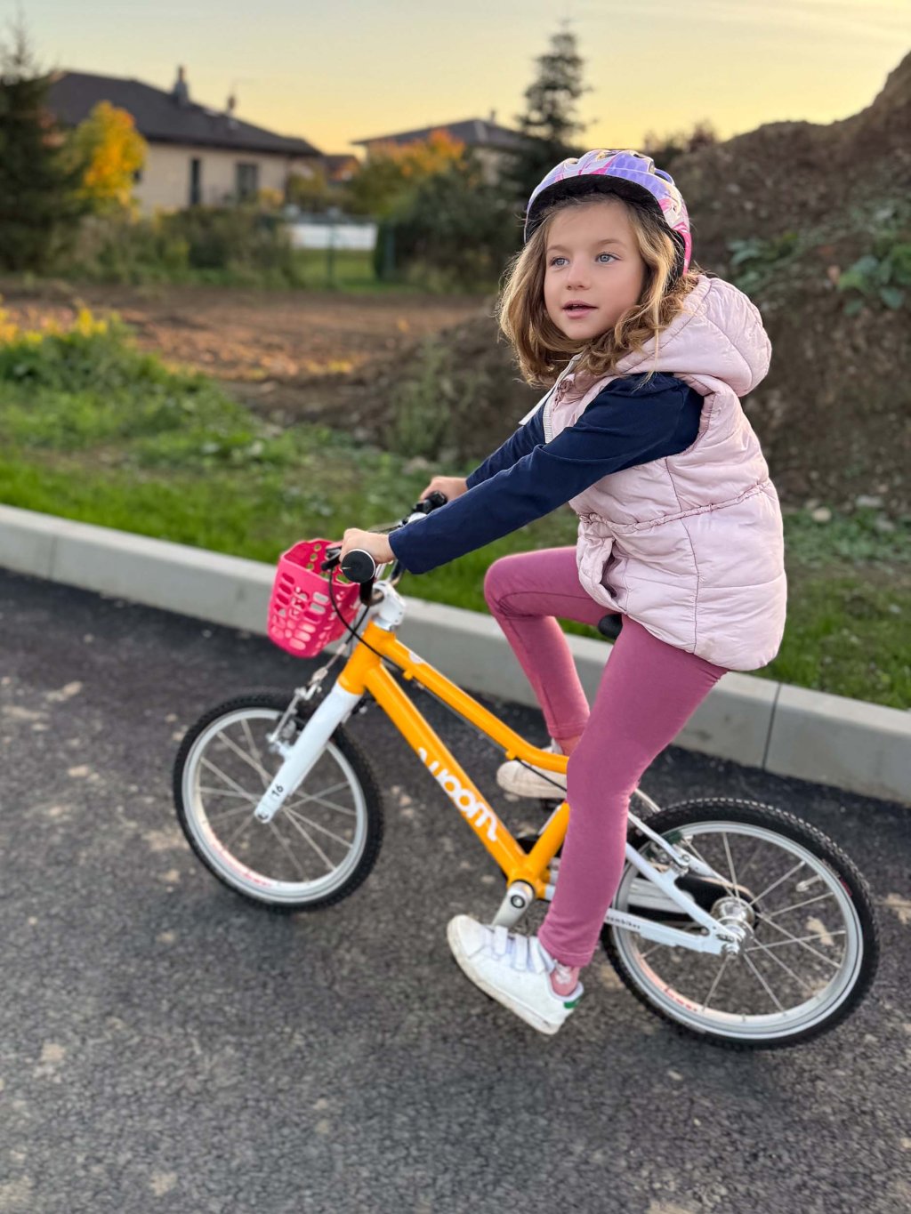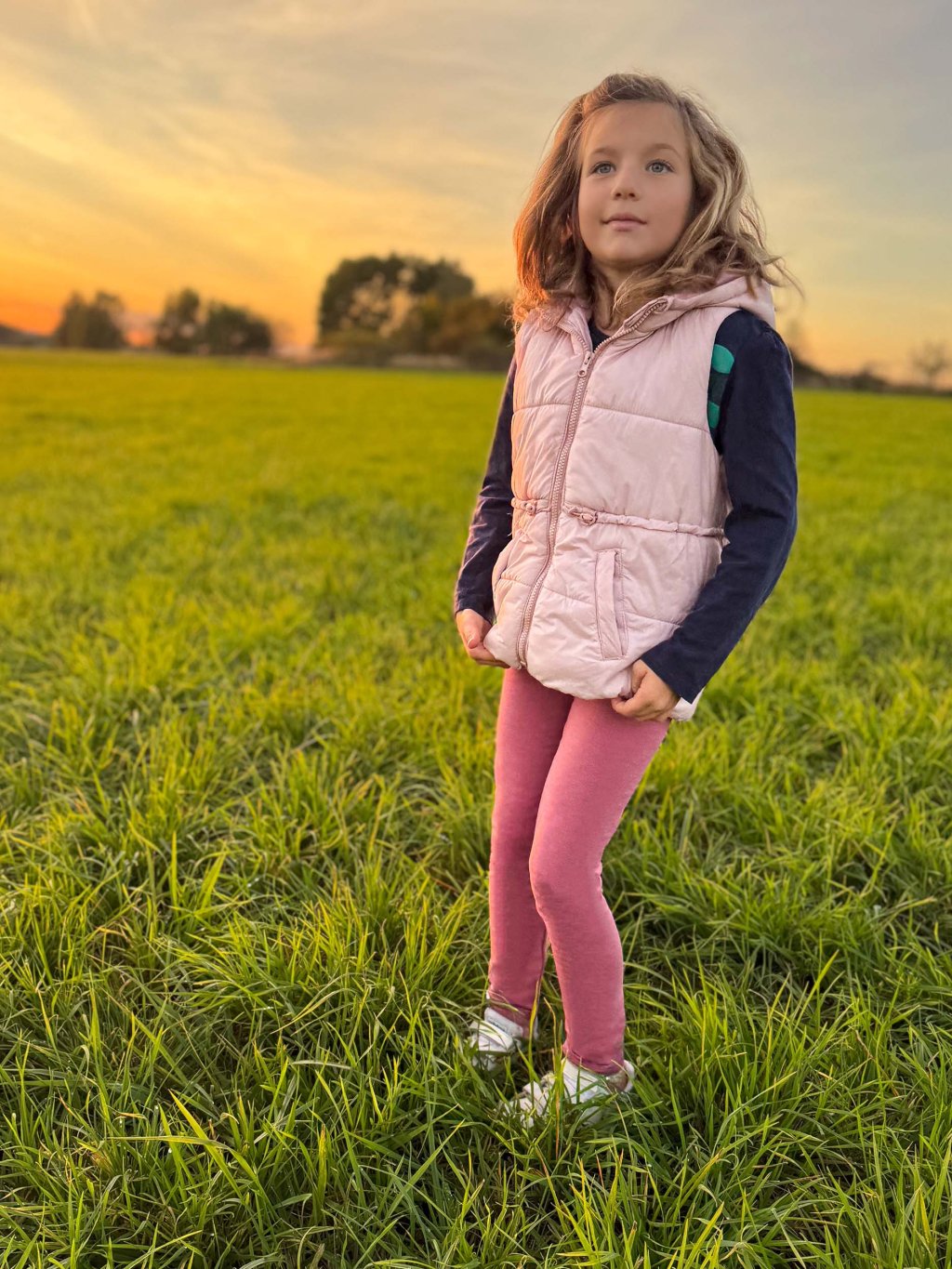 Na fotografii je dětská velikost na sedmileté holčičce 122/128.