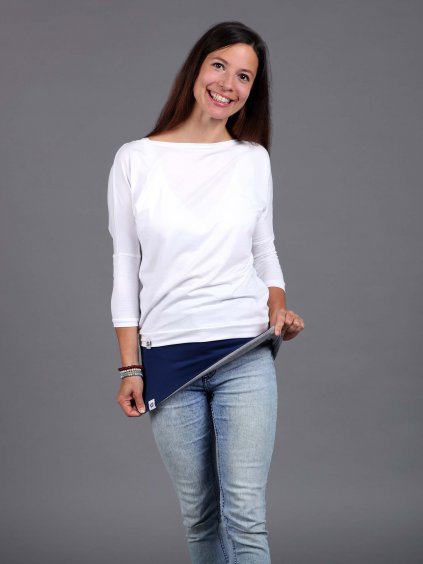 Oboustranný bederní pás NiceBelly příjemně hřeje, neroluje se a vypadá elegantně. Z každé strany je jinak barevný a dá se tak výborně kombinovat s různým oblečením.